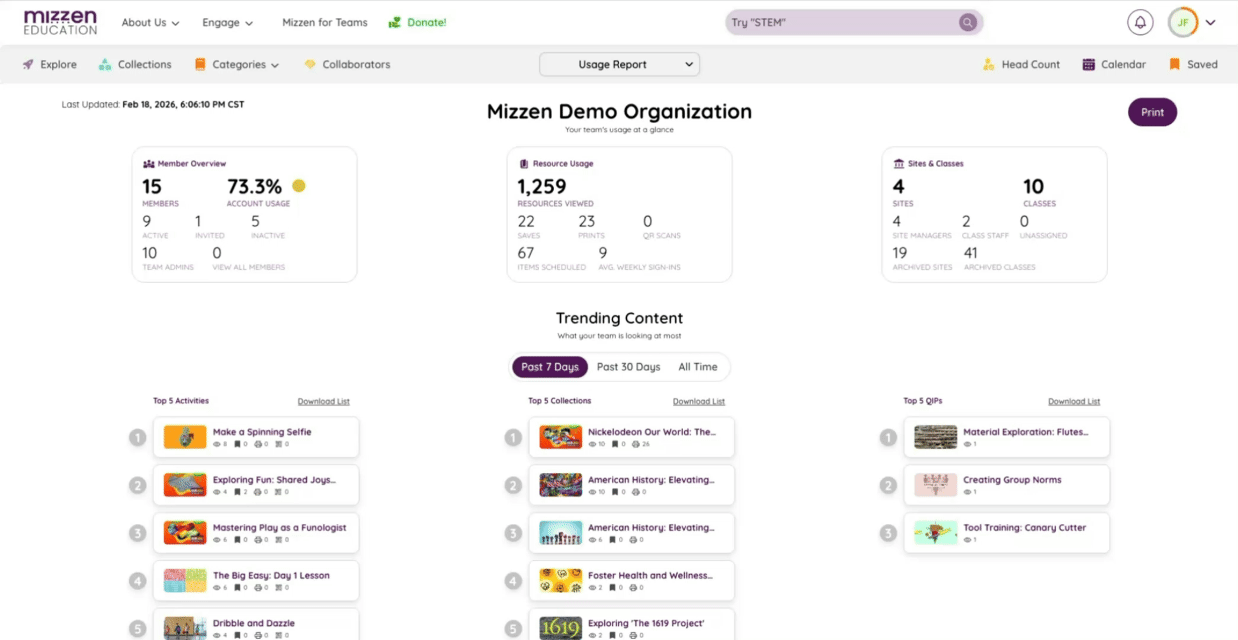 - Less prep. More connection. Learn and grow with other educators with a Mizzen for Teams account. Join forces with your fellow program staff to plan, coordinate, and schedule professional learning, or create a professional learning community with educators from other programs. Goodbye, burnout.